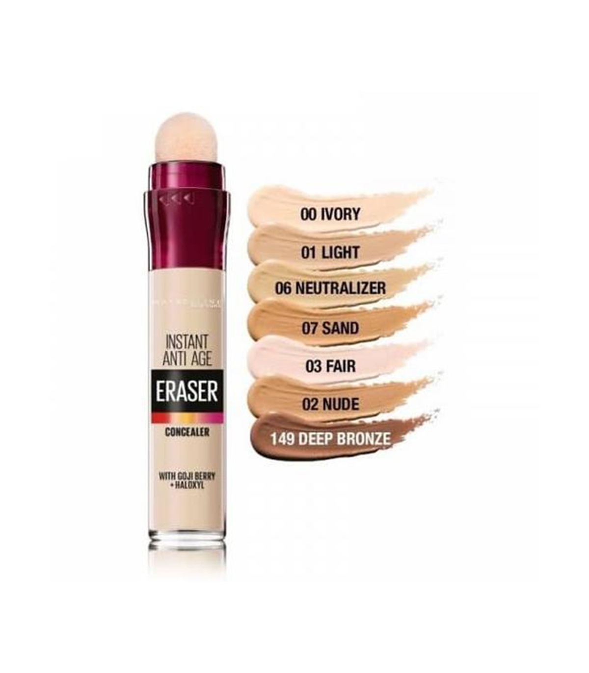 برخی از مدل های کانسیلر میبلین، مانند Instant Age Rewind، حاوی ترکیباتی مانند هالوکسیل و گوجی بری هستند که خواص ضد چروک و لیفتینگ دارند و به کاهش ظاهر پف و سایه های اطراف چشم کمک می کنند.